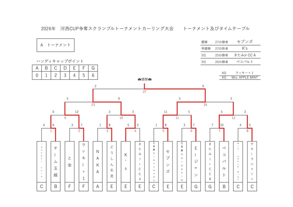 「2026年 河西CUP争奪スクランブルトーナメントカーリング大会」は、決勝までのすべての試合が行われました。